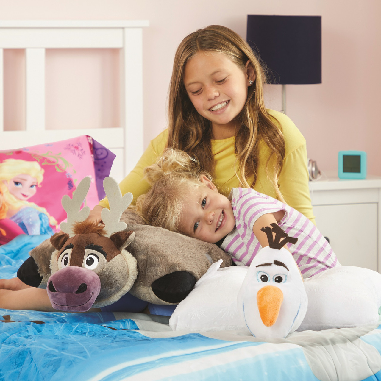 Pillow Pets brings you one of your favorite Disney Frozen characters, Olaf! Created from Elsa’s magical powers, Olaf is by far the friendliest snowman to walk the mountains above Arendelle. He is friendly, outgoing, and loves all things summer – especially warm hugs! Pillow Pets brings this lovable snowman to life with a super-soft plush folding stuffed toy/pillow so cuddly you’ll never want to put it down! The Pillow Pets Disney Frozen Olaf will offer loads of warm snuggly happiness to Frozen fans of all ages. An ideal nap-time companion – not to mention a comforting partner on road trips or airplane rides – Pillow Pets are anything but just another toddler pillow. The Olaf Pillow Pet starts out as your pal, then unfastens to quickly become your pillow! A bedtime solution that will have your kids running to their room with their new pet for a good night’s rest on their new favorite pillow. Licensed Disney merchandise. BPA and phthalates free.