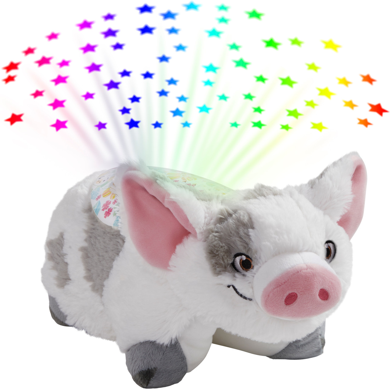 LET YOUR IMAGINATION SET SAIL: Go on your next voyage with this Sleeptime Lite Pua Pillow Pet! He’s not only cuddly, but also projects rainbow colored lights! Fans of Disney’s Moana will love this pig plush.