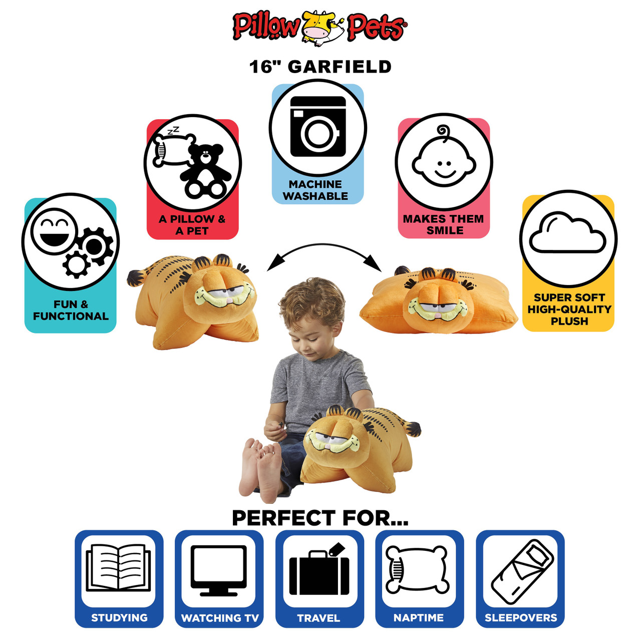 BEST BUDDY: Pillow Pets are an ideal naptime companion. They are a super-soft plush pillow and folding stuffed animal toy, so cuddly you will never want to put them down! A comfortable travel friend for any child on road trips & airplanes, and can also be used as bedroom decor. Pillow Pets bring joy, security, comfort, and smiles to all ages. Super soft, parent approved, fun and functional, high quality plush designs that last through childhood and beyond.