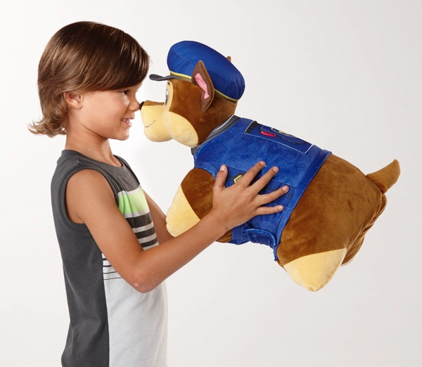 Pillow Pets has teamed with Nickelodeon to create your own favorite Paw Patrol character Chase! From Marshall, the firedog, to Chase, the police pup, and Skye the High flying’ Copter, each character brings unique personality and skill to the team, modeling the importance of teamwork and good citizenship. It’s a Pillow, it’s a Pet… It’s a Pillow Pet. A super-soft plush folding stuffed animal so cuddly you’ll never want to put it down! An ideal nap-time companion – not to mention a comforting partner on road trips or airplane rides – Pillow Pets are anything but just another toddler pillow. The Pillow Pets Nickelodeon Paw Patrol Chase starts out as your pal, then unfastens to magically become a comfy pillow! Made of high-quality washable plush fabrics. BPA and phthalates free. Opens to a 16-inch pillow.