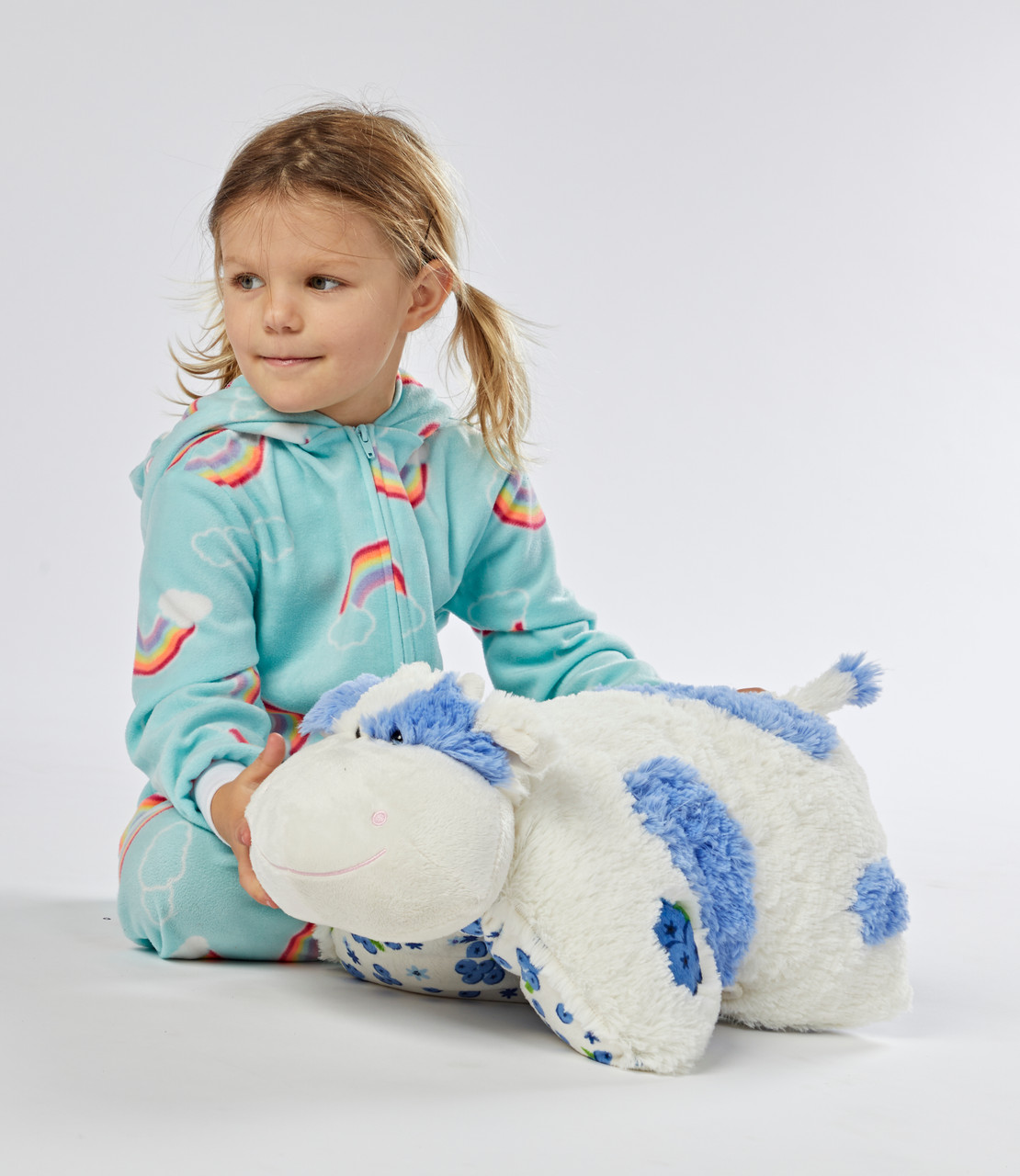 This adorable cow smells like blueberries – a fruity aroma that is fresh and subtly sweet! Fluffy and fabulously soft, this adorable Pillow Pet is perfect for playtime, and a comforting cuddle buddy at bedtime. Surprise your little one with a Blueberry Cow Pillow Pet that they will love endlessly as a child, snuggle with as a teen, and end up taking to college. Pillow Pets bring joy, security, comfort and smiles to all ages. Super soft, parent approved, fun and functional, high quality plush designs that last through childhood and beyond.