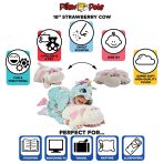 This adorable cow smells like a just-blended-with-fresh-strawberries strawberry milkshake, and is as cute as can be! Simply sweet, fluffy and fabulously soft, this Pillow Pet is perfect for playtime, and a comforting cuddle buddy at bedtime. Surprise your little one with a Strawberry Cow Pillow Pet that they will love endlessly as a child, snuggle with as a teen, and end up taking to college. Pillow Pets bring joy, security, comfort and smiles to all ages. Super soft, parent approved, fun and functional, high quality plush designs that last through childhood and beyond.